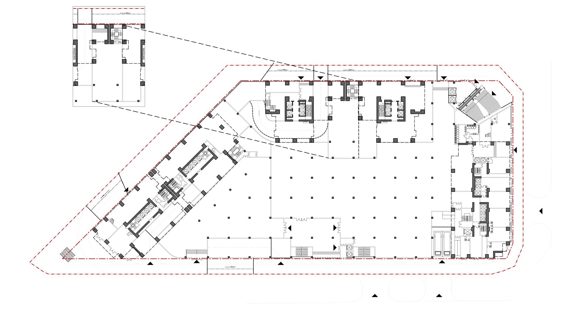 深圳金领假日公寓位于福田南路和滨河大道交汇处,地处土地资源稀缺的皇岗口岸片区。项目总用地面积约 12600 ㎡,总建筑面积约 182600 ㎡,由 3 座超高层塔楼及一层裙房(局部三层)、四层地下室、一层半地下室组成。如何在有限用地内平衡容积率和日照、视野、城市友好性、居住价值,提升城市居住品质,是金领假日公寓核心设计难点。项目经过 7 年的建设周期,于 2019 年 12 月顺利落成竣工。