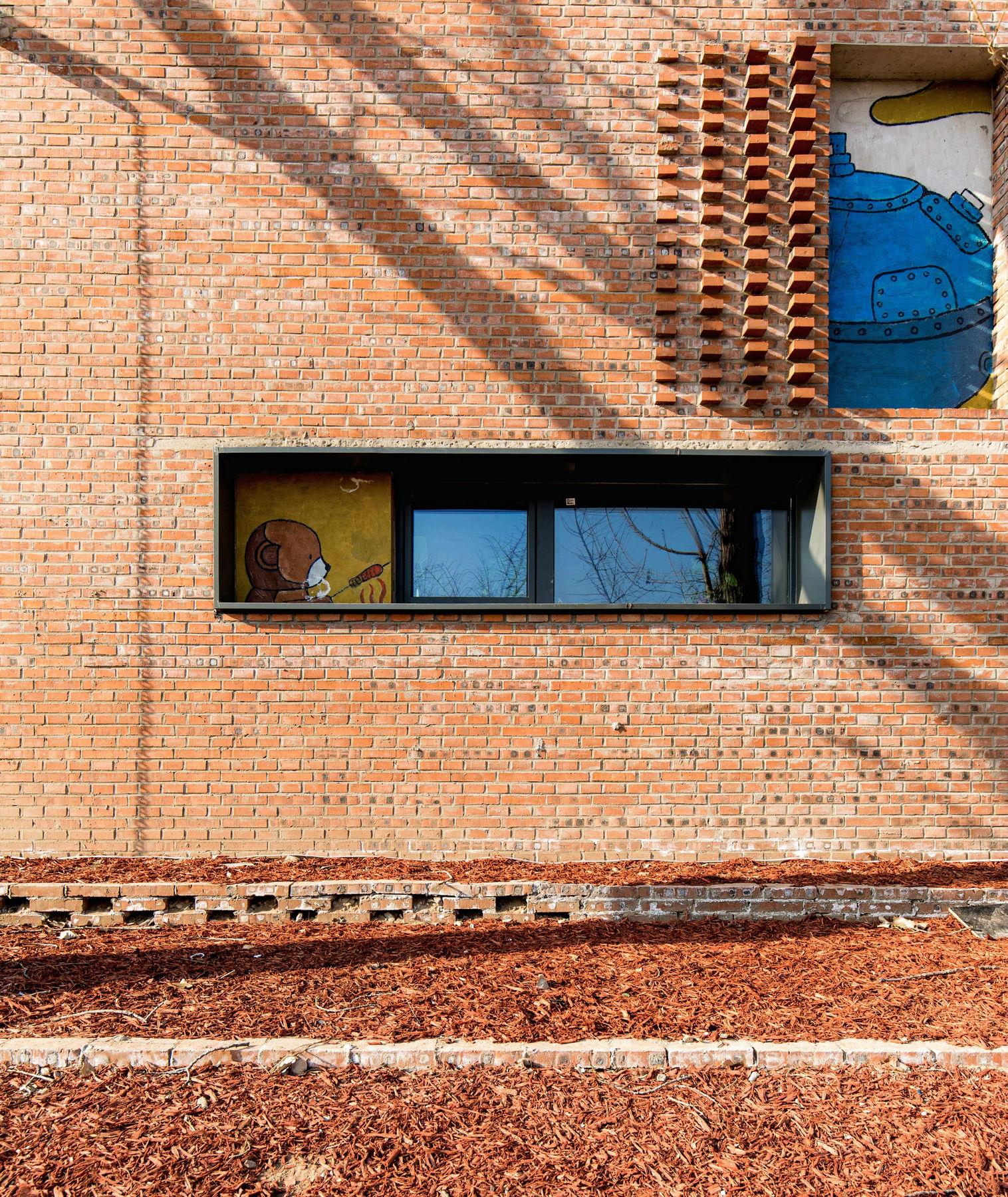 大面积的天窗和风塔为室内采光与通风提供了充足的补给,创造了冬暖夏凉的人居环境,郁郁葱葱的杨树透过天窗向室内洒下斑驳的倒影,建筑与自然自成画卷。