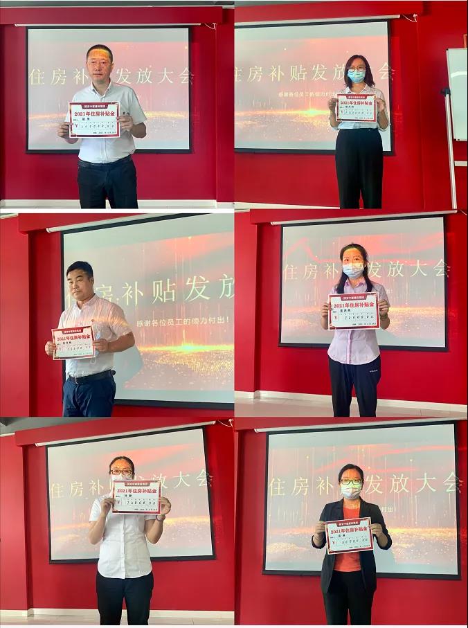 集团自发布员工福利政策以来,通过各项指标核对,在全体员工的见证下,于今日发放第一批员工住房补贴,共计发放184万元。领取员工依次上台并分享自己的感受,讲述他们在公司创立初期与公司一起走过的艰辛不易,他们在公司实现了自己的价值,同时鼓励所有同事珍惜眼下舒适的办公环境和公司公平公正的平台,努力实现自身价值,不断学习不断进步。