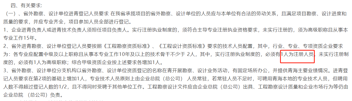 从资质下证以来,我们一直都在努力进行各省份的备案,力求早日完成所有省份的备案,让我们能够更好地开展业务。在备了二十多个省份以后,我们发现青海省是要求最严格的省份,每一项资质都有不同的人员要求,并且每一个人员都要求不止一个,这对我们来说是一个很大的难题。因为我们是刚开办的企业,所以人员还没有那么多,我们一直在等着人员够了才能进行下一步的备案。